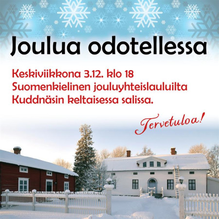 Suomenkielinen jouluyhteislauluuilta Kuddnäsin keltaisessa salissa, Pietarsaarentie 22, Uusikaarlepyy.
